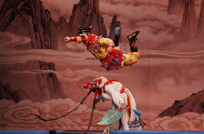 上海京剧院优秀青年演员郝杰在本次《借扇》饰演孙悟空。好胜的谷好好笑言,“中国戏剧节时,郝杰在台上演《七侠五义》,我在台下看,第一反应他的动作那么干净利索,我该怎么办?立刻有了分秒必争的感觉。”