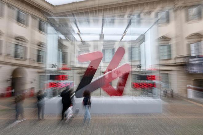 米兰-科尔蒂纳冬奥会、冬残奥会倒计时牌。新华社记者 李京 摄