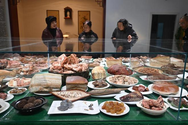 10月29日,在甘肃省嘉峪关市举行的“盛世奇石宴”展览上,展出了从全国各地收藏的天然奇石大餐达1000余道,收集人历时30年经过对上百种石种的收集、巧妙组合、精心点缀,整理出了肉禽类、果蔬类、海鲜类、食用菌类、面点类等各式佳肴。