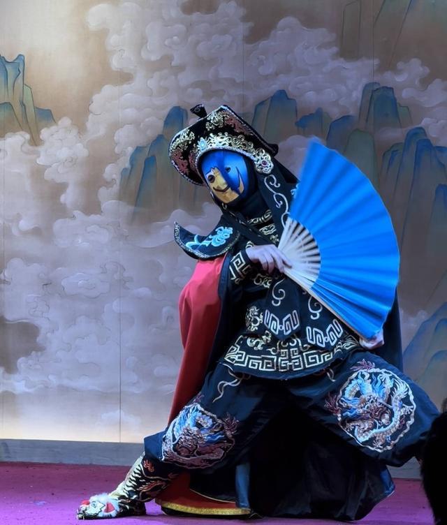 最近,成都蜀艺剧院的川剧演出在落幕前,近两分钟的“彩蛋环节”总能引发全场欢呼——演员戴着缀上真发的“杀马特脸谱”,与传统川剧脸谱形成强烈视觉反差,其顶部的蓝色发丝随动作轻晃,用默剧式表演与观众互动,格外引人注目。