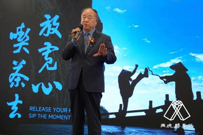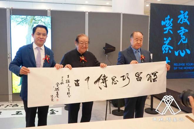 “放宽心·吃茶去”摄影书法展突破传统呈现形式,依托创新光影技术透视书法线条,让习惯屏幕视觉的观众能清晰感知莫言左手书法的墨色层次与流动质感。整场展览既延续了随笔集《放宽心,吃茶去》中“茶碗一倾,天地广阔”的生命热忱与豁达心境,也为香港文化艺术领域注入了新的活力。