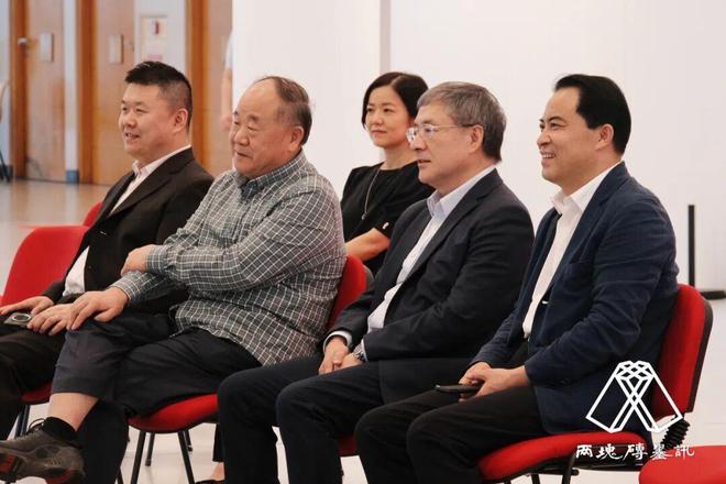 香港大學副校長鄧希煒教授(左一)、著名學者、翻譯家金聖華教授(左二)、著名學者、書法家金耀基教授(原香港中文大學校長)(左三)、诺贝尔文学奖获得者莫言(左四)、舒同研究会会长王振(右一)、香港中联办宣文部副部长陈新育(右二)、中国文化产业协会会长张斌(右三)、中国文联副主席潘鲁生(右四) 摄影 王丽雯