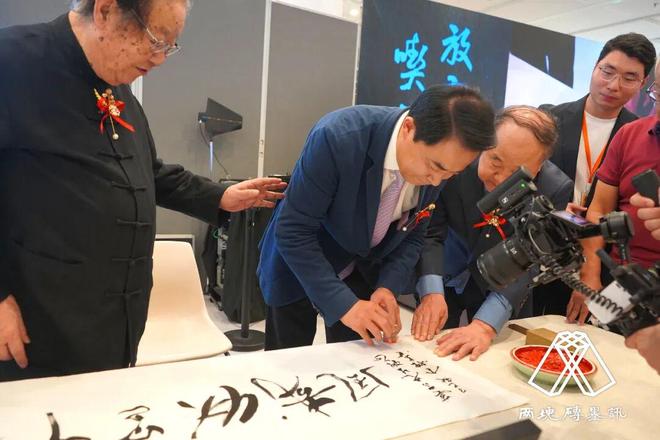 本次展览开幕式可谓亮点纷呈:莫言、王振及嘉宾登台致辞,从文化传承、艺术创新等多个维度分享对展览的思考与期待。致辞过后的剪彩环节,嘉宾共同按动电脑屏,屏幕瞬间闪现“香港万福”画面,象征着本次展览正式开幕!以莫言亲手书写的“香港万福”作为整个展览的启动标志,寄托了莫言和王振对香港美好的祝愿。