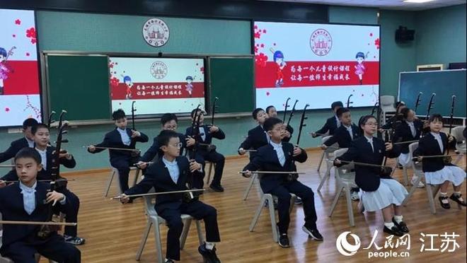 梅园实验小学“太湖情韵”二胡社团的同学正在演奏。人民网 刘益佳摄