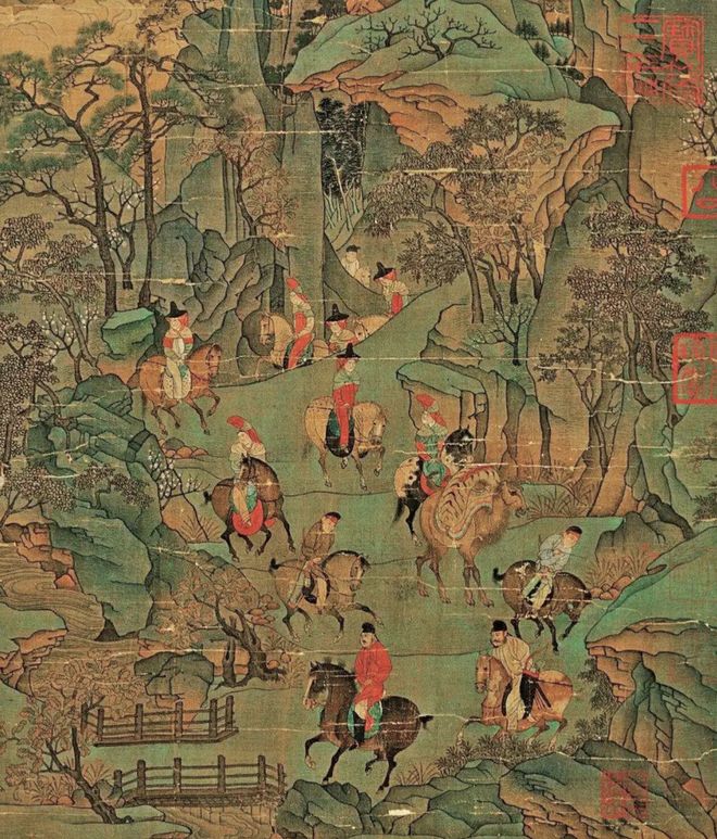 唐代(传为李昭道所作)作品《明皇幸蜀图》局部。