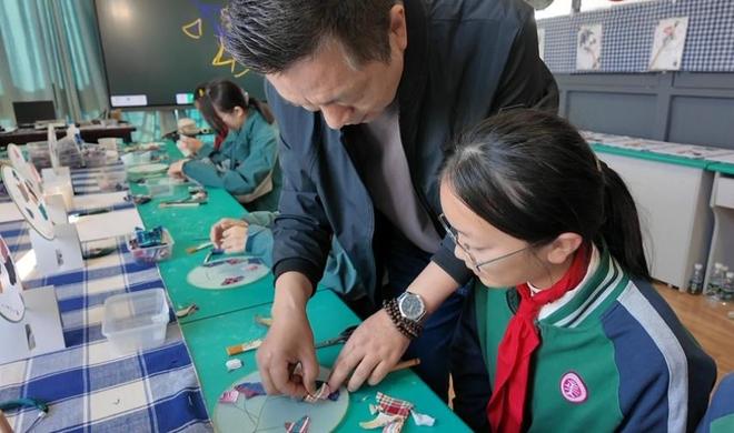 让审美感知从“被动欣赏”转向“主动创造”。开设土布贴画课程,不仅是“非遗进校园”的具体实践,更是贴合教学实践的育人创新。这项课程已成功开展多年,让学生在动手创作中提升能力、浸润文化、树立自信,实现“以美育人”“以文化人”的教育目标。