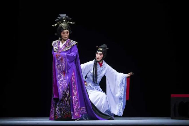 张曼君导演特别介绍,该剧首次恢复使用上党铜器——上党平锣、上党钗、上党小锣,实现武场音乐的本真回归。唱腔设计秉持传统古典风格,突出上党梆子高亢激越的艺术特色,“梆子声急促而起,精准传递人物幽微复杂的内心世界”。全剧坚持回归艺术本体,强调剧本文学性,突出表演核心,舞美空灵写意,在“双寡夜辩”等关键场次中迸发强烈戏剧张力,揭示古代女性在权力漩涡中的困境,营造出浓郁的“莎士比亚式”悲剧氛围。