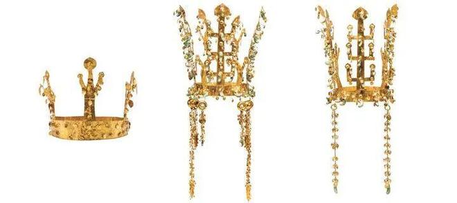 左起依次为瑞凤冢金冠、金铃冢金冠、天马冢金冠