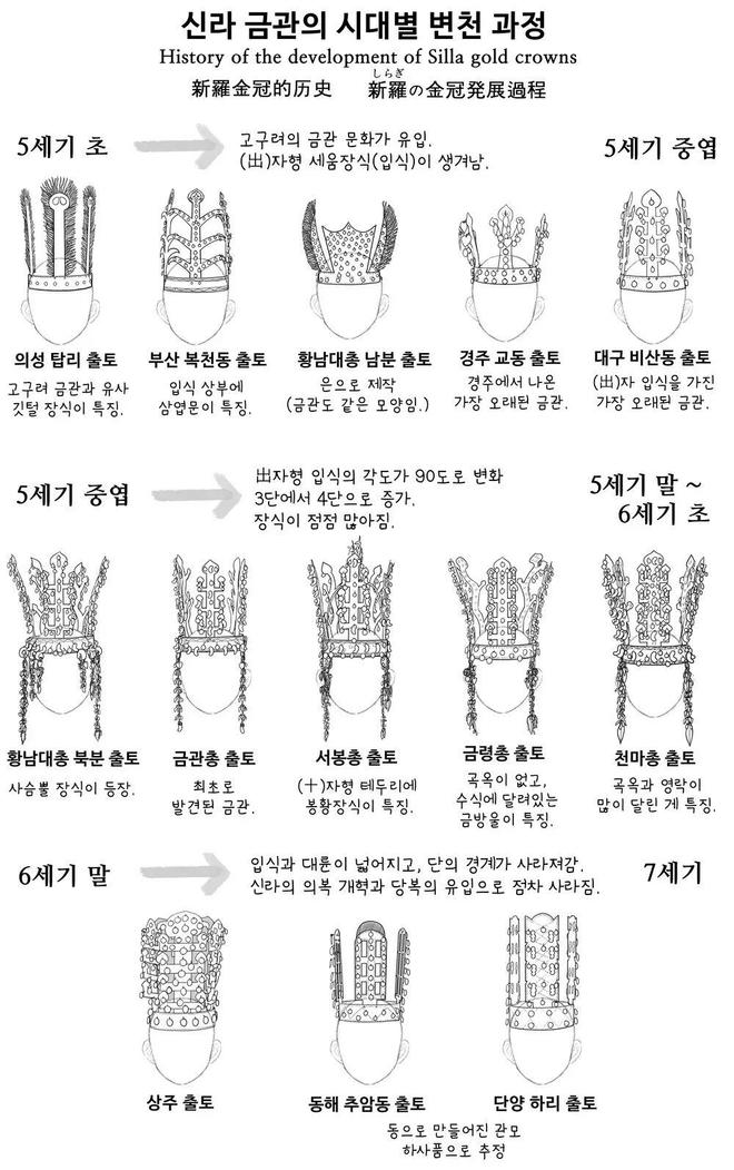 新罗金冠的类型演变发展图