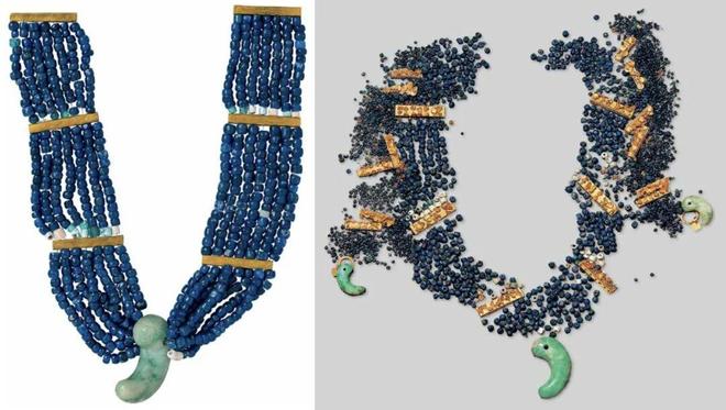 如上图所示,原件其实还有两条垂饰,但新闻图里没看到,但在相关的匠人新闻图片里是有的,不知道是没拍到还是最后没送(如果没送就太抠门了点)。