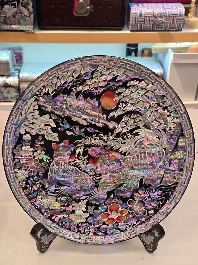 双方互赠的礼物都有一种“你中有我,我中有你”的意思。韩国《京仁日报》(경인일보)的一篇报道主要聊了螺钿漆盘(https://www.kyeongin.com/article/1754366),说该技艺起源于唐朝,在高丽改良发扬。里面还提到了宋代出使高丽的徐竞对此的夸赞,说的应该就是《宣和奉使高丽图经》中新罗“螺钿之工,细密可贵”,“骑兵所乘鞍鞯极精巧,螺钿为鞍”等内容,徐竞多次提到了高丽漆工,高丽产的了螺钿漆器也是当时贵族非常推崇了。报道觉得送螺钿漆器是关系低迷的当下对双方悠久的经济文化交流史的回顾。