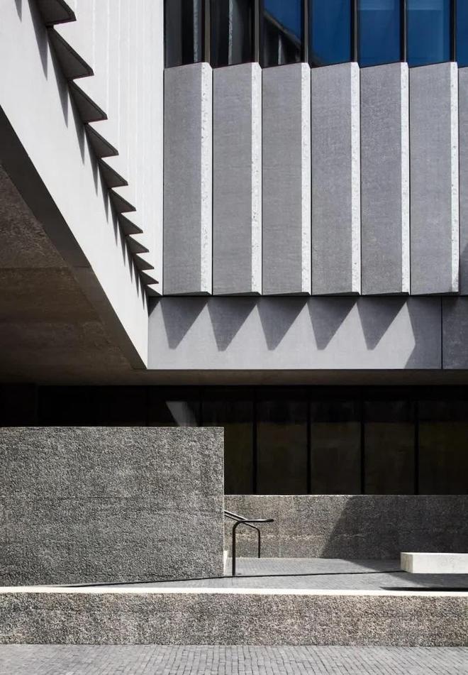 该建筑包含九个亭状空间,以深挑檐为特点,其边角被大刀阔斧地切削,显露出内部混凝土的粗粝。建筑外立面通体采用阳极氧化铝板,勾勒出窗框的位置。普林斯顿大学建筑师德罗恩·麦考伊说,这一建筑融入了粗野主义的经典元素,“由于其恢宏的体量感,人们会从中看到传统的粗野主义风格,也会看到路易·康的影子。我认为这座建筑精准地捕捉了那种建筑风格历久弥新的时代感。”