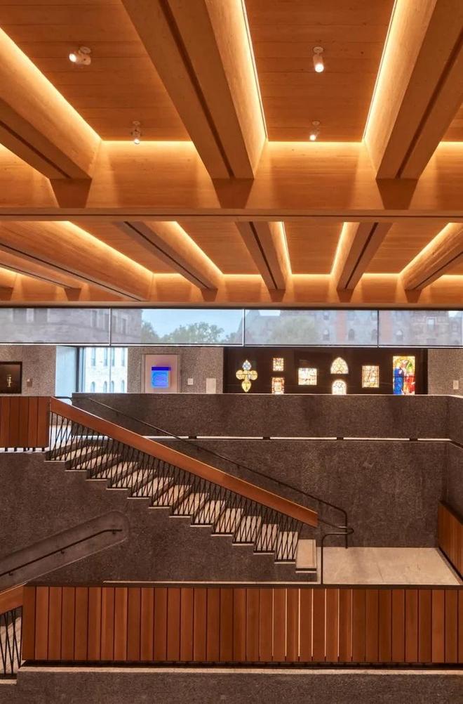 展厅区域内分布着若干木质饰面的小型休息室,部分顶部绘有壁画,可供观众片刻小憩。建筑顶层有一家拥有开阔露台的餐厅。此外,多个展厅采用深色嵌入式天窗引入微光,以此营造沉浸式的观展氛围。如今,在不同建筑师的通力合作下,他们打造了一个兼具内涵与工艺的场所,在普林斯顿大学校园的历史中心散发着独特的气息。