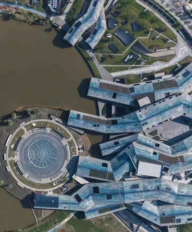 不过,这一设计也曾引来争议,许多网友认为这种拼接手法过于直白,几何切割削弱了自然意境,呈现出一种突兀的构成感。同时,该建筑群的平面视角被网友吐槽像“鳄鱼喝水图”。