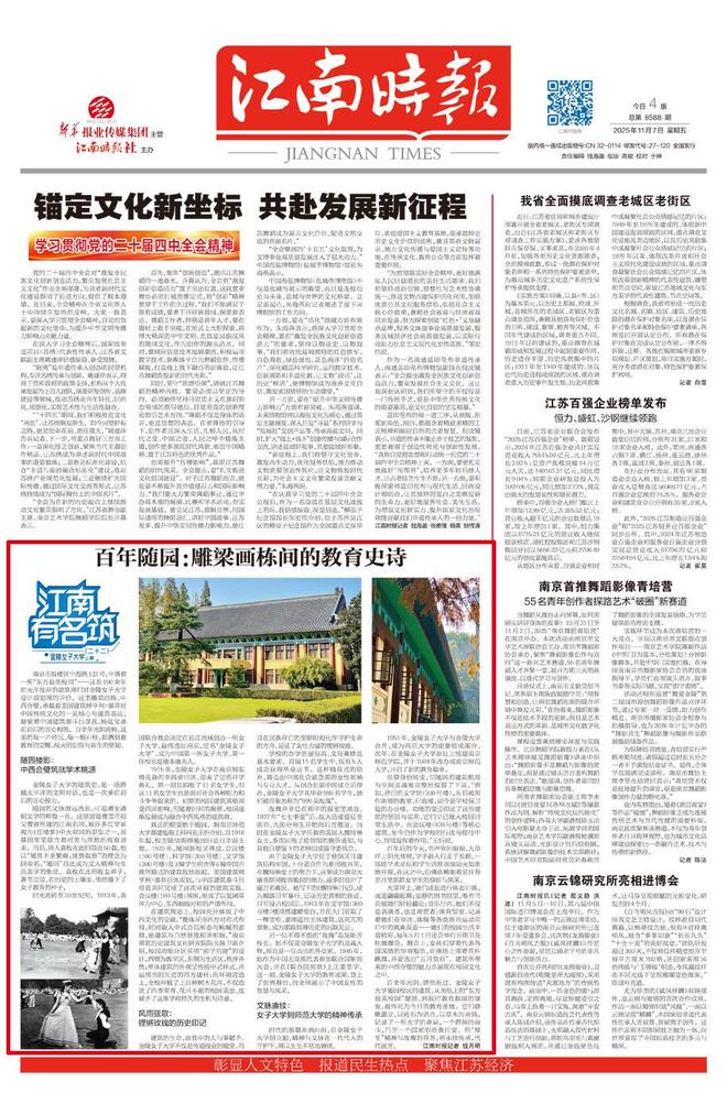 南京市鼓楼区宁海路122号,坐落着一所“东方最美校园”——这是100余年前大洋彼岸的建筑师们对金陵女子大学设计规划图的评价。这里雕梁画栋、中西合璧,承载着美国建筑师亨利·墨菲对中国传统文化的一见倾心与建筑表达,凝聚着中国建筑泰斗吕彦直、杨廷宝承前启后的匠心构筑。百余年光阴流转,这里的每一片砖瓦、每一根石柱,都镌刻着教育的觉醒、战火的创伤与新生的坚韧。