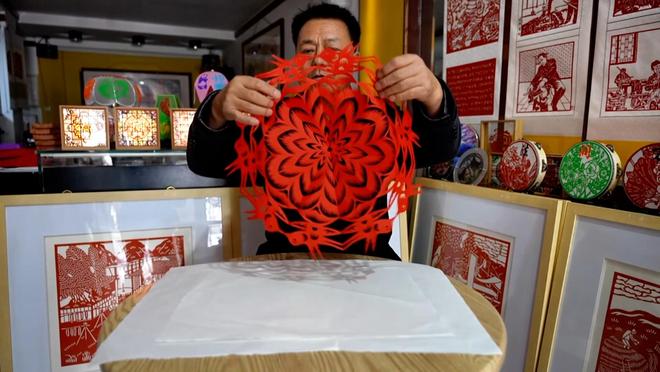 在付忠民的带领下,非遗工坊成立了。他们的剪纸作品,通过线上电商、线下展会等多种渠道销往全国各地。乡亲们跟着付忠民学手艺,不仅掌握了新技能,更靠自己的双手“剪”出了日子的新模样。