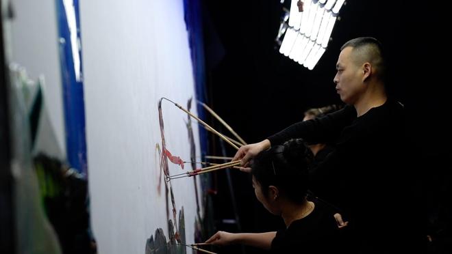 让皮影更好地融入现代生活是这些年薛宏权追求的目标。原本只熟悉皮影雕刻的他组建了一支皮影表演团队,并尝试突破传统皮影题材、表现手法和视听表达。