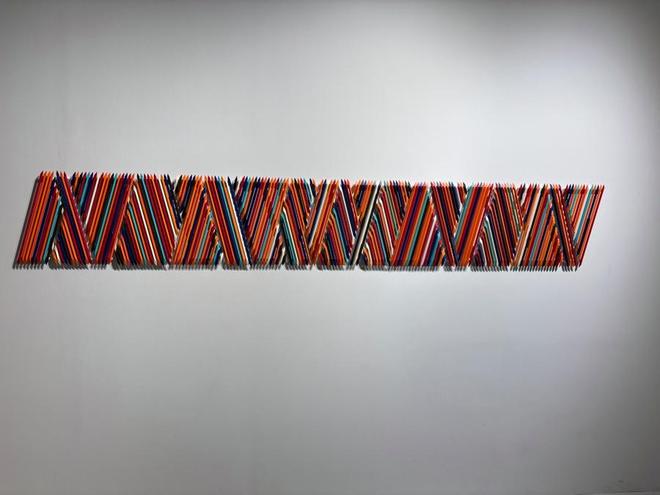 此次展览分为三大主题,分别为“棱角分明的金属景观”“文明的横截面”“膨胀的人工自然,及其崩裂”。2024年新作《323根刺》以铝制基底承载323根黄铜尖刺,精密螺丝固定的可拆解结构,暗喻文明秩序的脆弱性。高4.7米的《线性花园》用交错金属条搭建“峡谷”,灯光透过缝隙投射的流动光影,让“花园”从实体景观转化为感官体验。这些作品以工业材质为载体,以“对称秩序”与“物质美学”为核心,既展现艺术创作的细节质感,更传递对“人工与自然”“个体与集体”的深层思考。