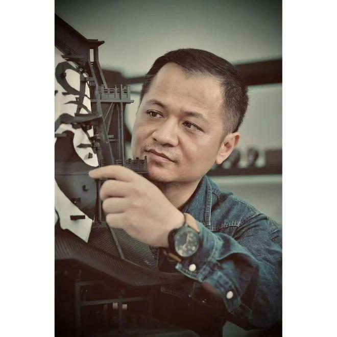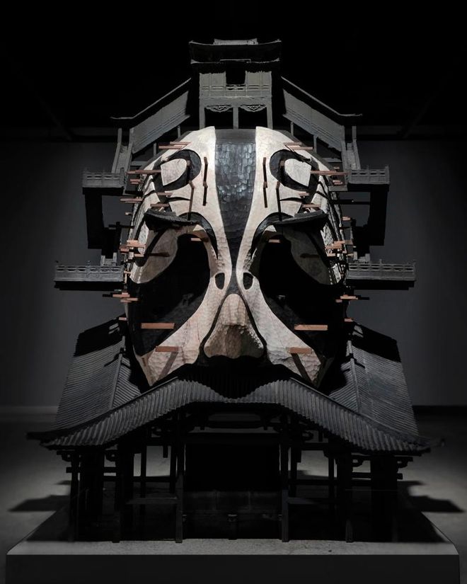 本次展览以雕塑为媒介,项祎在创作中探寻中华优秀传统文化的现代性转化之路。他在创作中呈现出清晰的趋向:一方面深耕于20世纪上半叶美术留学先驱的研究,作品如《百年身影》《百年面孔——留法前辈掠影纪》,重塑了那群在时代激荡中远赴海外、引西润中的先贤风骨,致敬他们以美育开拓文化未来的精神征程。另一方面,他的创作深植于中华优秀传统文化的沃土,将对建筑、雕塑、书法与戏曲的研究转化为当代形式语言。《纵横》将书法的笔力与庑殿顶的结构解构重组,演绎为空间中的刚柔相济;《起霸·营造》更以榫卯对接脸谱,以铸铁构筑戏台,使古代建筑美学与戏曲程式在形构中共生。