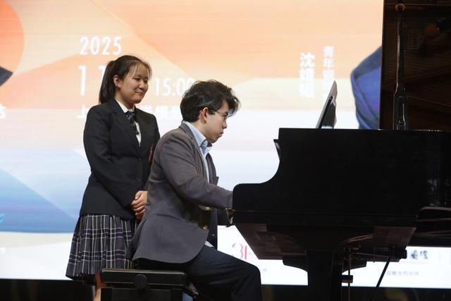 南洋模范中学16岁学生金妍玮演奏拉威尔《小奏鸣曲》第一乐章。她学琴十年,已考取上音演奏级一级并斩获白玉兰国际音乐节全国总决赛一等奖。沈靖韬从乐句处理、情感表达等维度给出专业指导,并现场示范,让在场师生直观感受演奏技巧的精妙之处。沈靖韬还带来范·克莱本大赛获奖曲目片段演奏,这也是他夺冠后首次在内地公开演奏,赢得全场经久不息的掌声。演奏间隙,沈靖韬向师生们发出“音乐邀请函”,11月8日他的内地巡演首站个人独奏音乐会将在上海音乐厅举行,将完整呈现大赛独奏轮全套曲目。