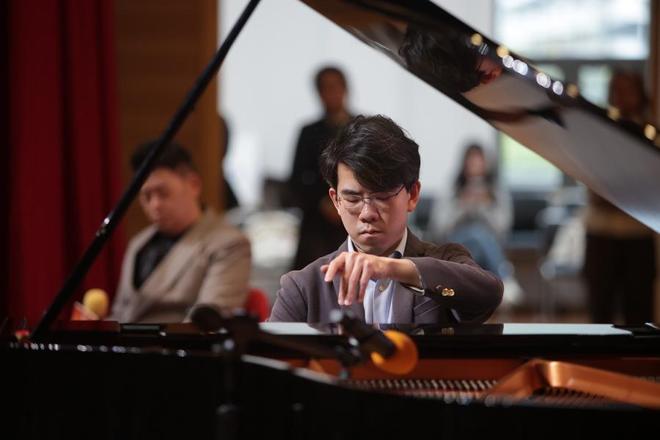 率先开始的是现场指导环节,南洋模范中学16岁学生金妍玮登台演奏了拉威尔《小奏鸣曲》第一乐章。随后,沈靖韬登台进行现场点评,从乐句处理、情感表达等维度给出专业指导,并亲自示范,让在场师生直观感受演奏技巧的精妙之处。