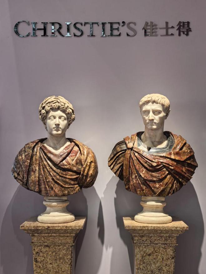 古代罗马的两位帝王——奥理略和奥古斯都的半身像,在佳士得进博会的展厅内实现了跨越世纪的对话。它们出自意大利艺术家奥古斯都·亚历山德罗·隆多尼之手,创作于十六世纪末至十七世纪,曾用于贵族宫殿的装饰。这组雕塑不仅代表了古典文明的艺术魅力,也象征着东西方文化的交流互鉴。