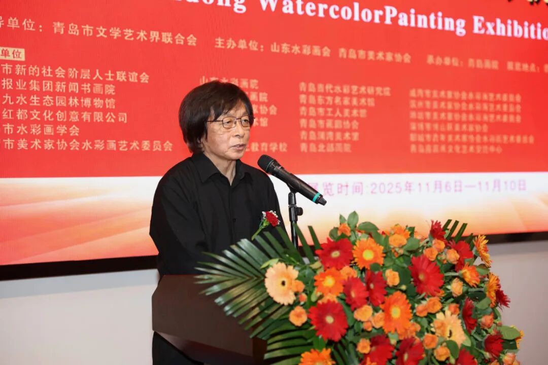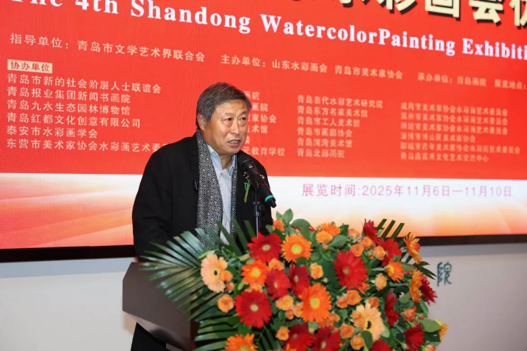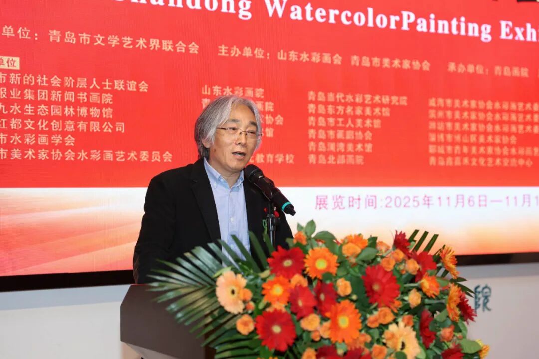 我们要向青岛市文学艺术界联合会、青岛市美术家协会、青岛画院、所有参与协办的单位和为此次展览付出辛勤劳动的艺术家、组织者、工作人员致以最诚挚的谢意。同时,也热忱欢迎每一位观众的到来,愿您能在此驻足、凝神,透过这一幅幅作品,触摸时代的脉搏,与我们一同沉浸于这片由水与彩共同绘就的,绚烂而深情的齐鲁画卷。