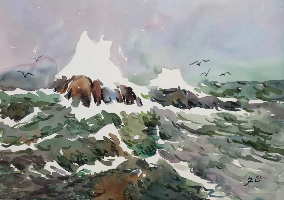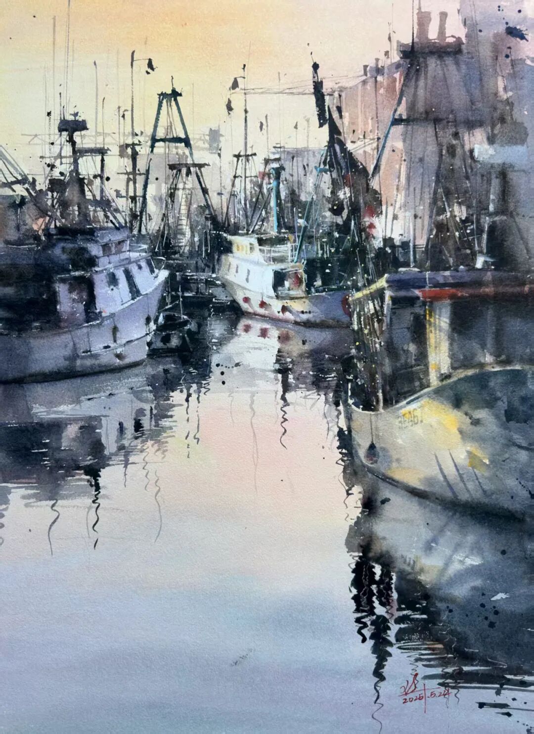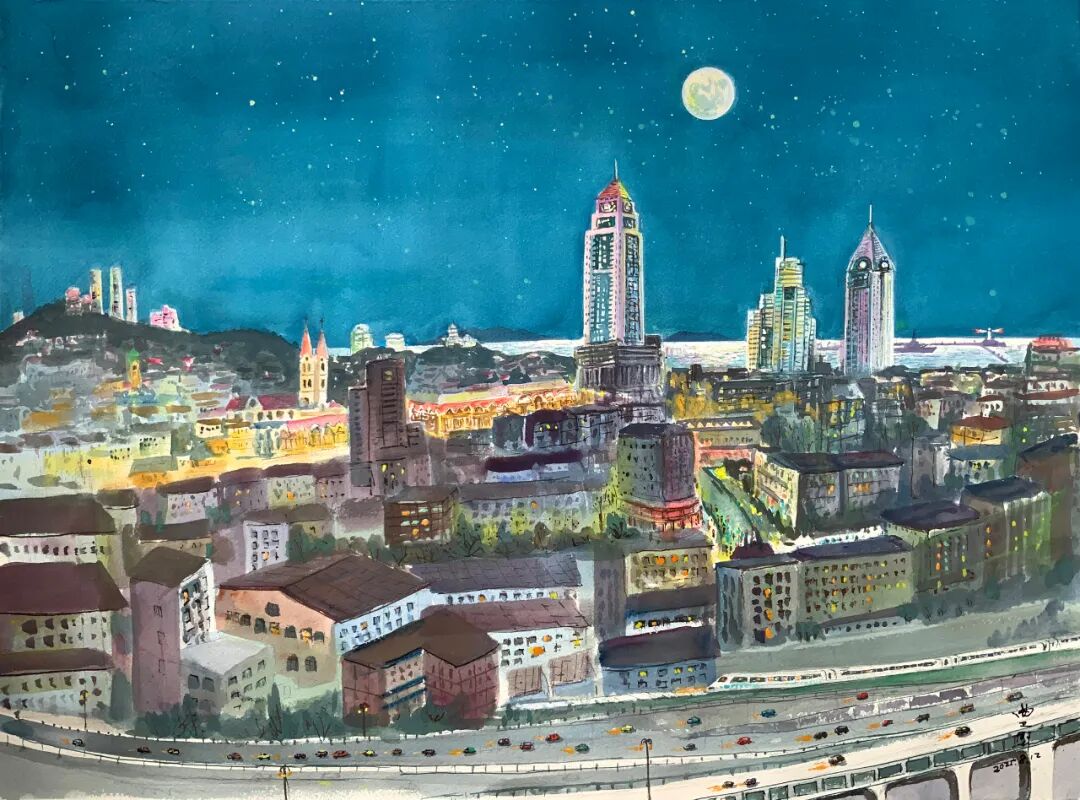 山东是美术大省,水彩艺术底蕴深厚,而青岛更是被誉为中国水彩画的“重镇”。本次展览汇集了优秀艺术家的180余幅水彩佳作,题材丰富,风格多样,既有对齐鲁大地壮丽山河的深情描绘,也有对新时代人民生活细腻生动的刻画。艺术家们以水为韵,以色为媒,充分运用水彩画通透、轻快、润泽的艺术语言,或气势恢宏,或意境幽远,生动展现了水彩艺术的独特美感与时代风貌,彰显了“山海画风”在水彩领域的不凡实力和积极探索。