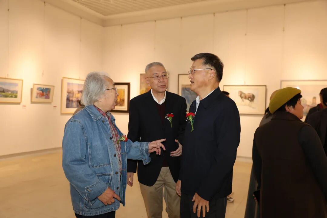 青岛市政协原主席杨军,青岛市政协专职常委、一级巡视员魏胜吉,青岛市政协专职常委张墨英,青岛市文联党组书记徐树成,青岛市委原副秘书长、办公厅主任,一级巡视员韩松涛,青岛市人大常委会原副秘书长、办公厅主任隋志强,青岛市委宣传部原常务副部长、青岛市文联名誉主席吕振宇,青岛市文联原党组书记、青岛市老年艺术家协会主席牛鲁平,中国美协理事、山东省美协原副主席、青岛市文联主席、山东水彩画会会长、青岛市美协名誉主席王绍波,青岛市文联副主席、青岛画院名誉院长、青岛市美术家协会主席张风塘,山东省书协副主席、青岛市书协主席、青岛画院院长郭强,青岛市商务局原局长淳于贤力,青岛市收藏家协会主席杨宏书,国家一级美术师、原青岛画院创作部主任牛锡珠,国家一级美术师、中国著名版画家张白波,青岛市美术家协会名誉主席邱振亮,青岛市美术家协会名誉主席、青岛市女书画家协会主席戴淑娟,国家一级美术师、青岛画院专职书画家宋文京,青岛市文化馆原书记陈洪坤,青岛市雕塑馆馆长叶东炜,山东水彩画会副会长王辉林,山东省美术家协会水彩画艺委会副主任、山东水彩画会副会长、山东画院国家一级美术师董海全,山东美术家协会水彩画艺委会副主任兼秘书长苏海青,原青岛市美术家协会副主席、纺织谷美术馆馆长林建业,原青岛市美术家协会副主席、青岛里院美术馆馆长曲宝来,青岛市美术家协会副主席、青岛美协花鸟艺委会主任陈灵均,青岛市书法家协会秘书长王德成,青岛富邦红木古玩城董事长张云山,青岛九水生态园林有限公司董事长刘祥,青岛丰华美景园林工程有限公司总经理李荣华,青岛市崂山区收藏家协会主席张龙,青岛报业集团新闻书画院院长李会展,青岛当代水彩艺术研究院执行院长窦凤至,山东水彩画会副秘书长、青岛钢笔画协会主席窦世强,山东水彩画会副秘书长、原青岛市美术家协会副主席王迪,青岛东方名家美术馆馆长方和亮,青岛市美术家协会副主席、青岛画院副院长赵峰,青岛市美术家协会副主席、青岛画院美术馆馆长李延智,青岛市美术家协会主席主席团委员季颁,青岛文艺评论家协会副主席、青岛大学绘画系主任亓文平,青岛市新的社会阶层联谊会副会长娄雷,青岛市新文艺群体协会副主席郎云鹏,青岛市新的社会阶层联谊会副秘书长张君旭,青岛著名水彩画家:薛益寿、姜世玉、赵祉平、李家成、李黎,山东水彩画会副秘书长、青岛当代水彩艺术研究院秘书长盛学彦,山东商报驻青岛记者站站长赵广爱,青岛当代水彩艺术研究院副秘书长李同舟,泰安市水彩画学会主席丁毅,威海市美协水彩画艺术委员会主任顾人敏,泰安市水彩画学会副主席兼秘书长吴悦明,泰安市水彩画学会副主席来岩公立华,淄博市博山区美术家协会副主席兼秘书长王爱国,潍坊市美协水彩画艺术委员会秘书长王乐志,泰安市水彩画学会副秘书长丁兴孜,青岛格外书店创始人陈淑真,青岛致公书画院副院长朱文松,青岛澜湾美术馆馆长徐怀敏,青岛北部画院院长陈娟娟,青岛祥瑞阁画廊总经理蔡祥云,青岛秘境空间总经理高雯,青岛翰墨缘画廊总经理孙守豪。此外,还有来自社会各界爱好艺术的同道们和媒体朋友们。