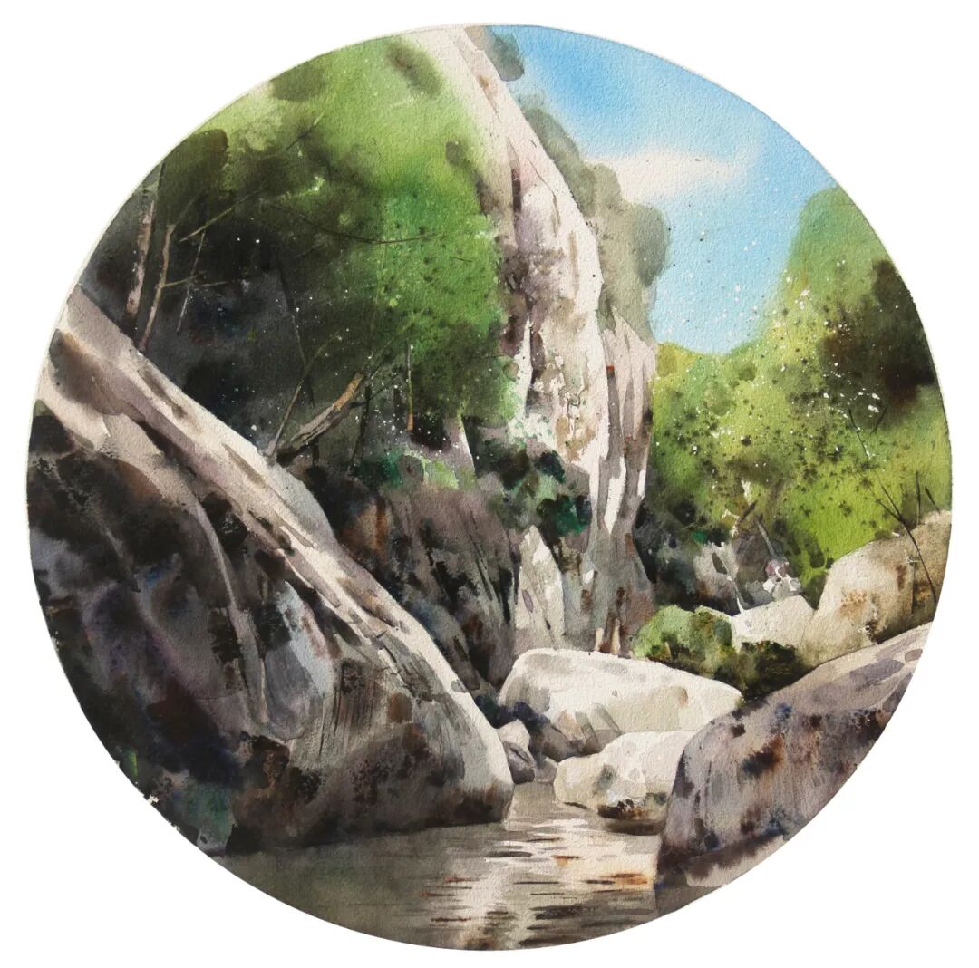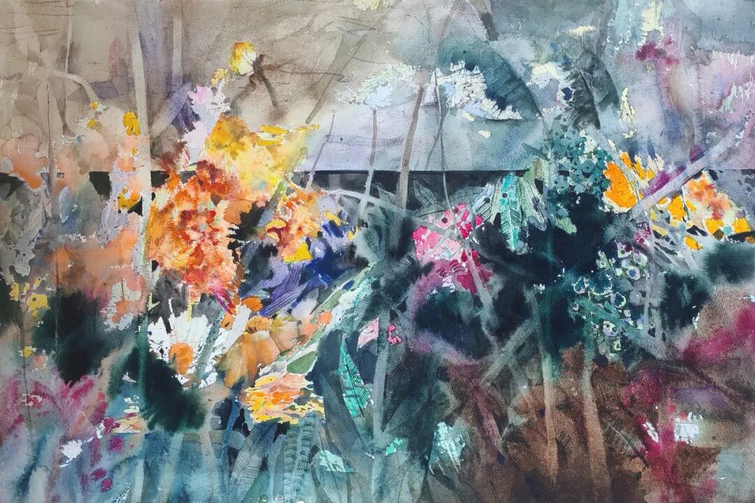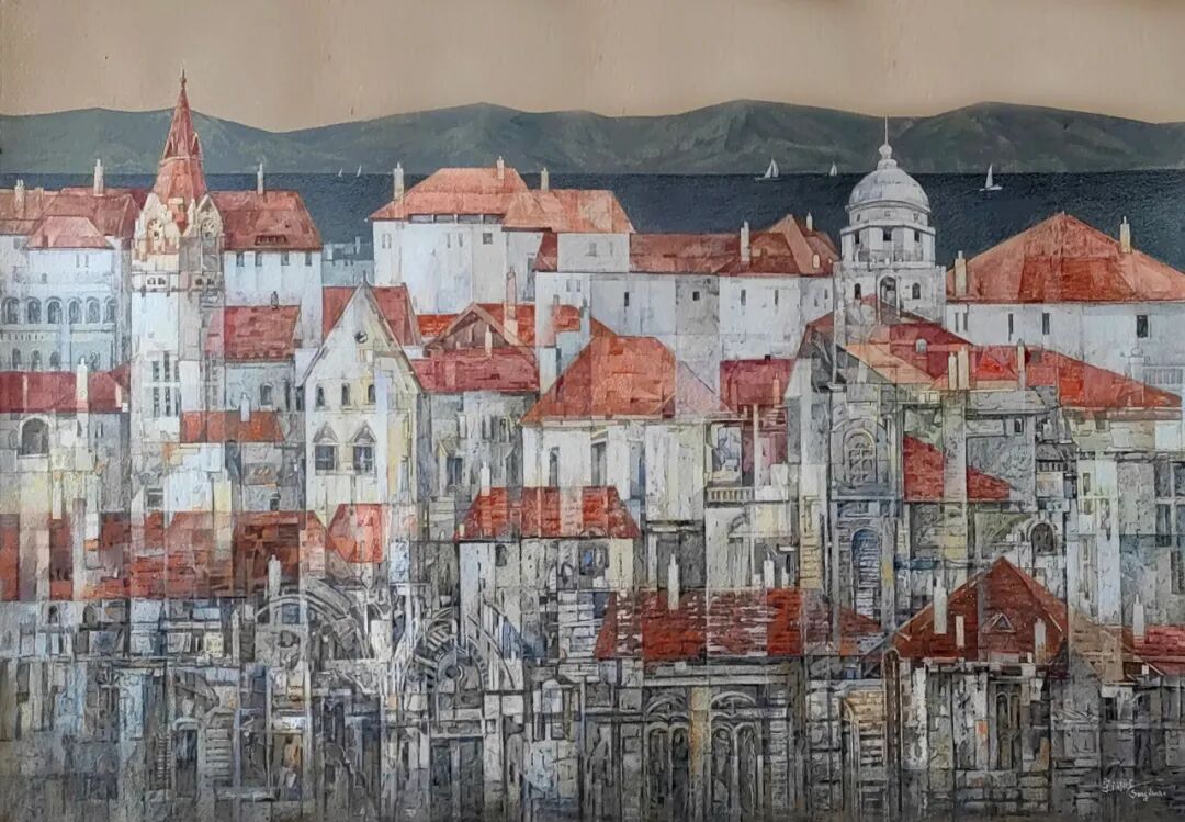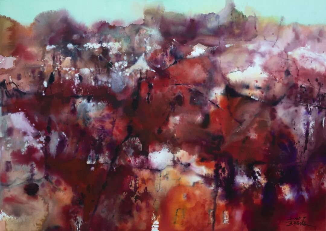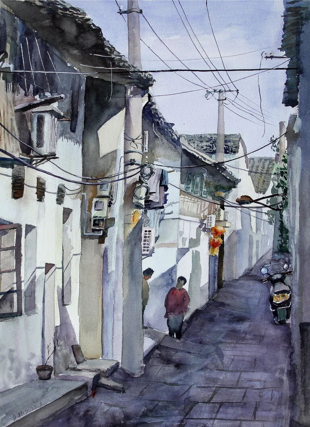 漫步于展厅之中,我们能够深切地感受到艺术家们对脚下这片土地的炽热情感。他们的画笔,既描绘着历史的厚重与沧桑,也捕捉着时代的脉动与鲜活。这里有对传统民居的深情凝视,在斑驳的砖瓦与光影间寻觅岁月的故事;也有对现代都市的敏锐观察,在水泥森林与繁华街道中勾勒出发展的线条;这里有齐鲁风物的生动写生,一草一木皆含情;也有内心世界的抽象表达,色块与线条的碰撞中激荡着思想的回响。在艺术语言的探索上,我们更是欣喜地看到了多元并蓄、百花齐放的繁荣景象。一部分艺术家坚守水彩本体语言的精髓,将水色淋漓、透明畅快的特点发挥到极致,在心灵感悟与大自然之间找到了精妙的平衡,作品充满了精神寄托感与生命力的展现。另一部分艺术家则勇于突破边界,融入中国水墨画的写意精神,或借鉴西方现代艺术的构成理念,不断拓展水彩表现的维度和深度。无论是具象的严谨,还是抽象的奔放,每一幅作品都是艺术家与自我、与自然、与时代对话的独特印记。
