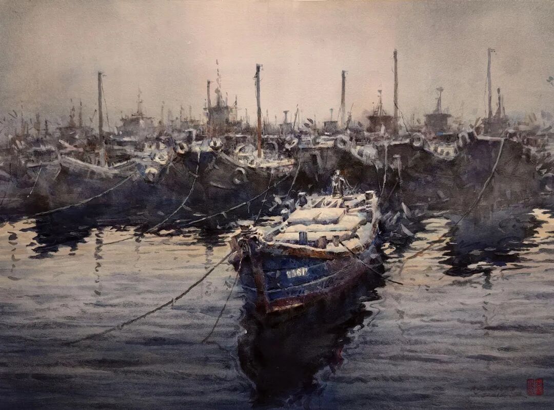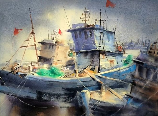 齐鲁大地礼仪之邦,文化历史悠久,为中华文化的发展奠定了深厚的根基。不仅如此,在吸收外来文化方面,山东省的艺术家们亦广泛吸收,孜孜以求在艺术的中西结合方面做出了非同寻常的成就。水彩画这种表现力丰富的艺术形式从徐咏青在青岛起步的萌芽,到吕品、晏文正时期,在山东省美术家协会领导下于1981年发起成立的山东水彩画会,作为全国最早的水彩画学术团体机构之一,至今已经四十五年。这期间山东水彩画会始终以传承文脉、培育人才为己任,让水彩画在山海之间生长出独特气质。继而宋守宏先生接过前辈艺术家的使命,第二届理事会逐步发展壮大着全省的水彩画家队伍,在全国大展上提升画家的创作影响力。在第十届全国美展上王绍波的水彩作品《渔歌》获得了山东省美术界的第一个金奖。使山东的水彩艺术创作在美术界真正得到了高度重视。