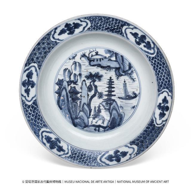图为葡萄牙国家古代艺术博物馆的青花山水楼阁纹盘。(主办方供图)