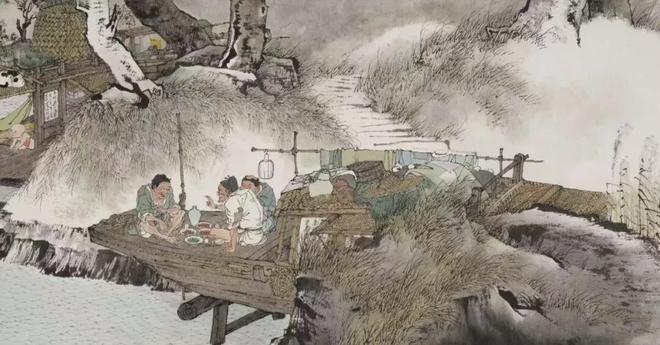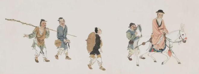 苏小松对传统的继承并非简单模仿。此次展览中,苏小松重新描摹钱选的代表作《洪崖仙踪图》,取材道教神仙人物洪崖先生,这一选择体现了他对隐逸高士精神的向往与对传统文人画精神的延续。而《待涨图》则是他的得意之作,采用“截取式”构图,以精细的笔墨以工带写生动描摹了几位普通船民等待涨潮的特定场景。