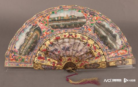 展览入口以龙舟划过江面的造景,开启粤港澳同舟共济、守望相助的记忆长河。整个展览以一把19世纪下半叶省港澳港口风景图折扇为引子,将近代以来专属于粤港澳的故事娓娓道来。