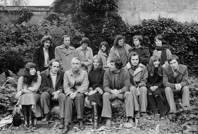 罗兰·巴特(前排左三)与他研讨班的参与者们,前排左二为罗兰·哈瓦斯。