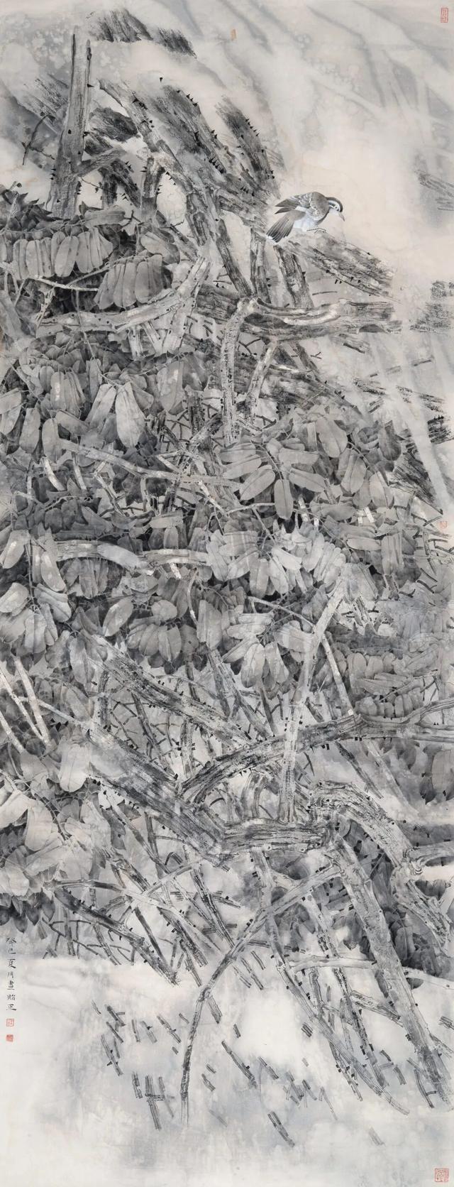 从中国画的表现形式论,大致可分为工笔和写意两大类:画家或精于“工笔”,或擅长“写意”,当然也有一些作品处于中间地带,被称为“兼工带写”,也称“小写意”。此次展览堪称一场写意与工笔的对话与交流。在参展名家中,擅长写意的有何水法、尉晓榕、乐震文、赵规划、叶菁、茹峰、丁力、嵇亚林、徐若鸿、于树斌、王永敬、丁一鸣、毕宝祥、肖素红、陈建锋、林兵、陈龙;以工笔著称的名家有谢振瓯、洪健、张真恺、王贻正、鲍海斌、叶芃、谢子静、左希文、甘永川、陆敬国、顾炫、范春晓、翁赟烨、刘利波、徐旭峰;善于兼工带写的名家则有陈林、徐惠泉、祁恩进、高洪啸、孙宽、余宏达、王葱葱、李鹏、张翰、韩京雷等。工笔和写意各有妙处,并非对立,他们或工或写,或兼而有之,以作品展现艺术水准与个性追求。