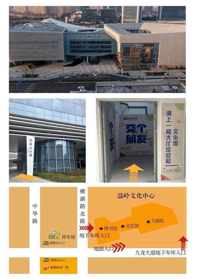 注意:从地下停车库C区文化馆入口进入,请使用楼梯前往一楼,通过安全检查后即可进入馆内,展厅位于文化馆三楼。