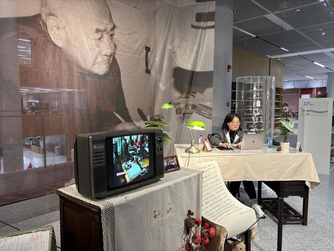 展览主视觉区,张贴有萧乾在翻译《尤利西斯》的照片喷绘,其视线对望处设置了书桌,图书馆读者随时可坐入。该区域还专门设有文洁若《捐赠说明》手稿的喷绘版,以及萧乾采访录像、策展工作笔记等,读者起身还能看到不少萧乾与文洁若的老照片。上海图书馆东馆手稿主题馆以“社会基础设施”为战略定位,探索并实践了以“服务与研究、普及与专业服务、图情研究与内容研究”三大并重原则为核心的运营模式。在这里,“阅读”的概念被重新阐释,是文字、声音、图像和视频复合共存的阅读,也是一切信息内容可视化和可感知的阅读,营造“连接一切,无处不在”的公共文化空间。