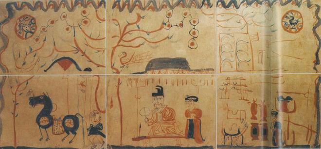 《墓主人生活图》是中国魏晋时期墓葬壁画代表作,1964年出土于新疆吐鲁番阿斯塔那古墓群,是中国现存最早的纸本墓葬绘画之一,现藏于新疆博物馆。