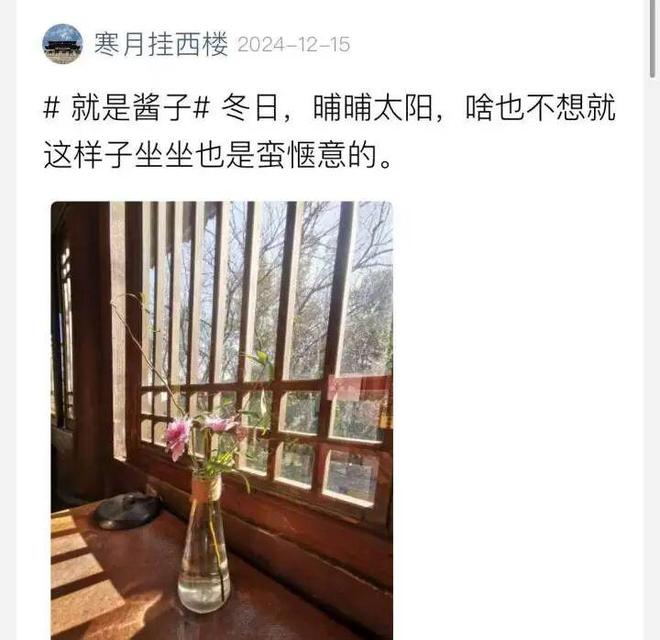 “bù太阳”这个词,一听就非常有画面感,在冬日,人们往往会寻一处背风向阳的地方,悠闲慵懒地晒着太阳,或邀三两好友,或准备一些消闲果子。难怪关于“bù太阳”,会有“太阳bùbù,瓜子嗑嗑”、“太阳bùbù、香烟屁股”的说法,总之,松弛感拉满。