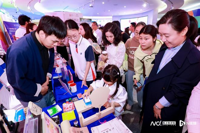 在创意市集板块,全省二十余所技工院校与多家优质文化企业集中亮相,带来陶瓷微书、蛋雕、榄雕等多项非遗技艺作品,琳琅满目、引人注目。其中,广东省国防科技技师学院特意制作的主题文创——“百万英才汇南粤”木版画,因其精妙的工艺和独特的岭南韵味,吸引了大量求职者驻足观看。