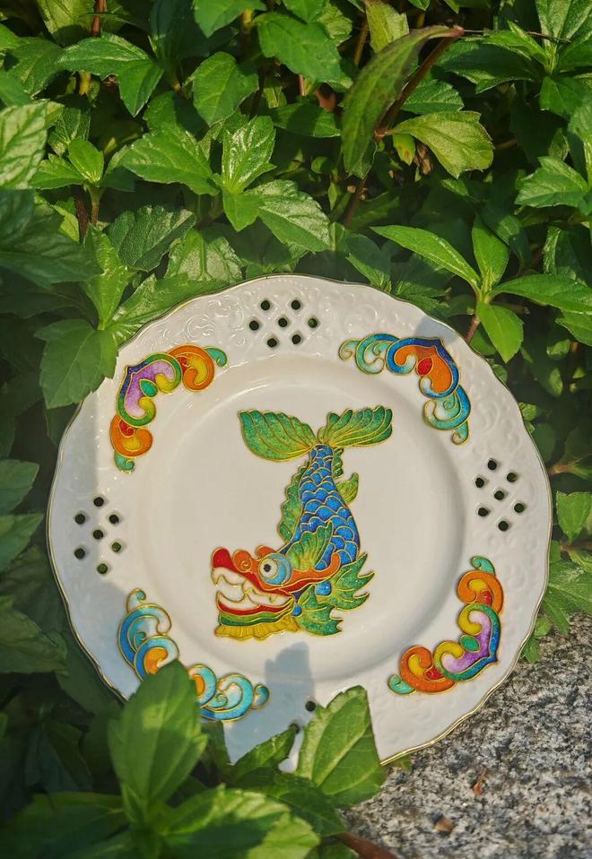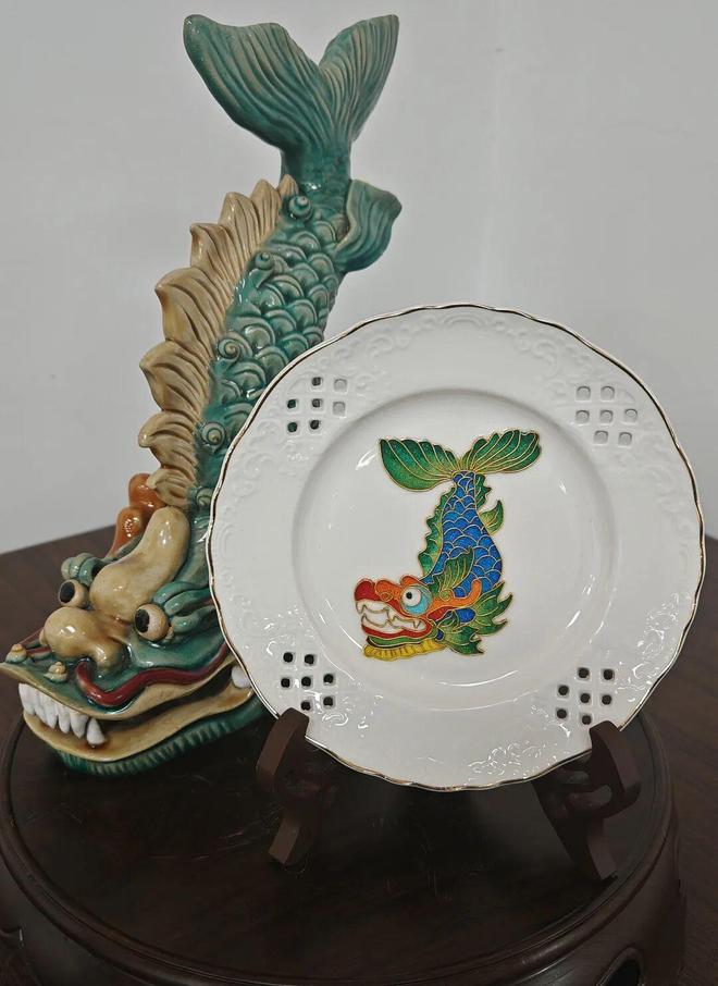 ✅亲手用掐丝珐琅工艺制作鳌鱼瓷盘装饰