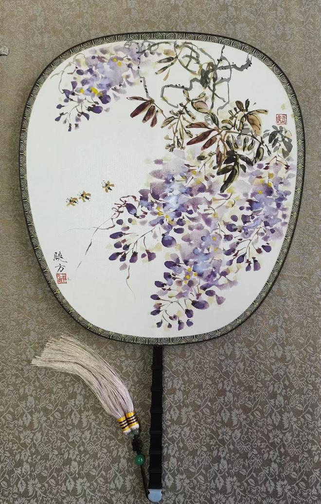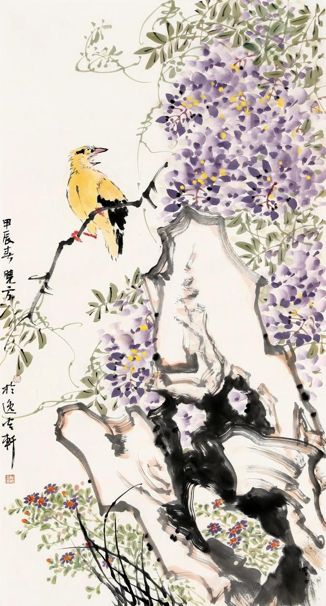 解晓方先生三十多年情钟小写意花鸟画,尤善画紫藤、荷花、竹子。他的画笔墨灵动,以情传神,融情感于笔端,无论一草一木、一枝一花,还是一鸟一鱼,无一不是画家真实感情的流露,赋予画面勃勃的生命力。另外值得一提的是,他的人物画,包括罗汉、仕女、达摩等题材的创作也形成了画家自己独有的风格。在这些大量的人物画里,可以看到顾恺之、吴道子的影子,还可以看到西方油画光影色彩技法对其作品的较大影响。传统与外域文化的影响,加上画家独特的理解,技法上独特的处理,使得作品更具个性,给人一种陌生化的视觉享受。其作品,无论在花鸟画还是人物画上,最大特征就是谢赫所说的六法第一之“气韵生动”。他的花鸟和人物,在宣纸上是活的,“在创作上,我始终要求自己:不求像,唯求活。”解画把能让“清雅飘逸”的画面上洋溢着鲜活的生命力作为最高追求。谢赫云:“ 虽画有六法,罕能尽该。而自古及今,各善一节。”因此说,解先生的画品能达到如此境界不简单。