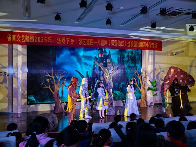 11月18日,湖南省直文艺院团2025“送戏下乡”演艺惠民活动走进浏阳河小学,为师生们带来经典儿童剧《绿野仙踪》的专场演出,活动旨在通过高雅艺术传递正能量,激发孩子们的想象力与创造力