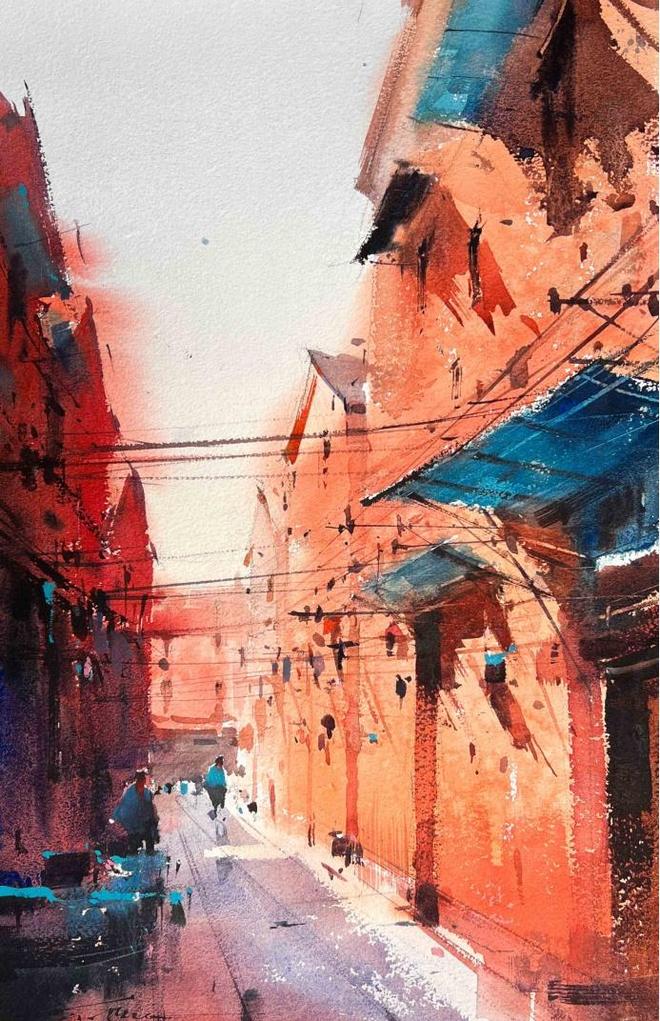 剥皮寮在万华,到了龙山寺,经过香火鼎盛的庙宇,往老街里走走,便能寻到这片街区。那是台北真正“老”地方。从我的画作上大家就能直观地看到,这两处的主色调都是红色,一种温暖而富有历史感的砖红色。