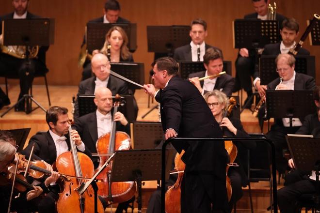 下半场,被誉为勃拉姆斯巅峰之作的《第四交响曲》奏响。面对这部以复杂、艰深著称的作品,蒂勒曼精准把控着音乐的内在张力,乐团演奏层次分明,铜管声部的厚重沉稳与弦乐声部的细腻绵长相互映衬,将作品中蕴含的深邃哲思与浓烈情感演绎得淋漓尽致。