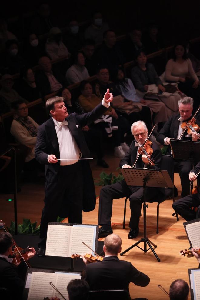 首场音乐会选取舒曼与勃拉姆斯的各自的最后一部交响曲,通过这两位有着紧密交集的作曲家,展现德奥古典音乐传统的浪漫传承与发展。舒曼《第三交响曲“莱茵”》率先奏响,通透温润的“维也纳音色”将阳光朝气的旋律铺展开来,弦乐的绵长与木管的灵动交织,仿佛莱茵河畔的波光、风土与人文气息尽数流淌,让观众沉浸式感受浪漫主义音乐的鲜活生命力。杨燕迪对此赞叹:“舒曼这部交响曲能演到这个水平,只有顶级交响乐团能做到,细致的处理、柔和平衡的音色都极具水准,中间乐章的间奏曲性质,很考验乐队的弹性、透明度和配合。”