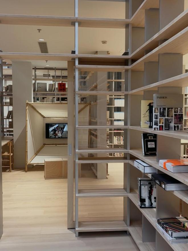 全新的图书馆名为“等等图书馆”,总面积为1700平方米,是中国首个公共当代艺术与设计图书馆,为艺术爱好者和专业人士精选艺术、设计、建筑、文化以及社会科学等领域的重要读本和影音资料。其书籍总收藏量为5万册,首期对公众开放1万余册。只见书架被巧妙置入一条缓缓升起的坡道之中,读者们可以循着这条迂回上升的路径,自由穿梭于不同的书籍之中。设计者、著名建筑师坂本一成借此发展拓扑学中对连续性的思考,将阅读转化为一场连续而沉浸的漫游。行走与思考、身体与心灵在坡面与弯折之间融合成新的感官体验。图书馆希望为读者提供深度阅读和思考的氛围,鼓励读者主动选择,开启探索、重识与创造之路。“中国当代艺术文献”,一个致力于中国当代艺术梳理、研究和书写的综合空间,则藏于图书馆二楼,追溯中国当代艺术的发展历程,珍藏史料,并通过文献展览、学术讲座、工作坊、学术出版等形式,唤醒文献,启示当下,憧憬未来。眼下这里就穿插了一个展览——“因地制宜:侯瀚如策展之旅系列”第一篇章“四海为家”,以“家”为线索展示因知名策展人侯瀚如策划的一些展览而引发的关键课题。