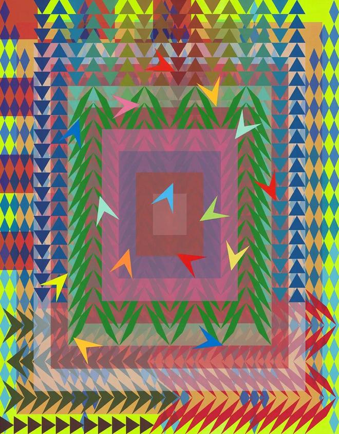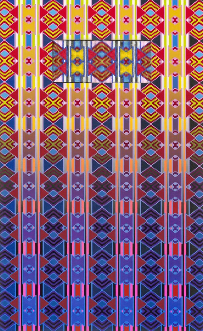 万花筒般的漩涡是人们对吉布森作品的鲜明印象。他使用绘画、工艺和拼贴作为解构和重新塑造被理解为当代美国原住民文化的手段。