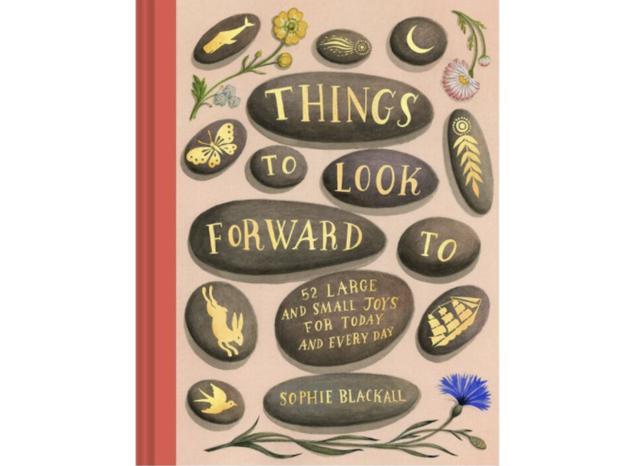 《值得期待的事》(THINGS TO LOOK FORWARD TO)。苏菲·布莱科尔认为它更多是给成人读者的绘本。封面来自苏菲收集的鹅卵石。每次去海边时,她一定会在兜里装满鹅卵石带回家,然后在上面画画,一切她喜欢的事物,白鲸,兔子,燕子,月亮,远航的船。